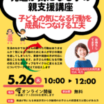 2026年1月14日 / 最終更新日時 : 2026年2月24日 user_name お知らせ 保護者向け 出前講座及び相談会「幼児期の子どもの発達と子育てについて」子どもの力を信じる子育て-終了いたしました。 「やりたがらない」「できない」そんな子どもの姿を見ると、親として不安になることもありますよね。でも、子どもには自分で育つ力がちゃんと備わっています。この講演では、発達の基本をふまえながら、子どもの力を信じ子どもに合った関 […]