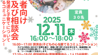 子どもの反応に合わせて言葉を選び、感情に寄り添う方法を学びます。発達段階に応じた声掛けや共感を通じて、子どもの自己肯定感を育むコミュニケーションスキルを、ワークを通じてお伝えします。たくさんの方のご参加お待ちしております … 続きを読む 保護者向け 出前講座及び相談会「幼児期の子どもの発達と子育てについて」-子どもの心を育てるコミュニケーション-