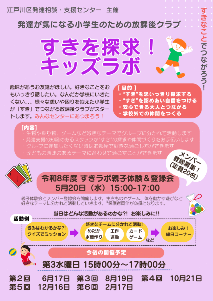 令和8年度 発達が気になる小学生のための放課後クラブ「すきを探求!キッズラボ」